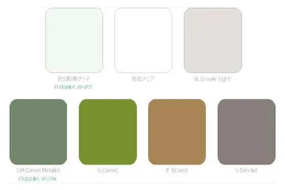 | GM (グリーンメタリック) | 0.065mm | 970mm×30m巻 | 80% | 外貼り | 飛散防止、UVカット、防眩効果、日射遮蔽 |
