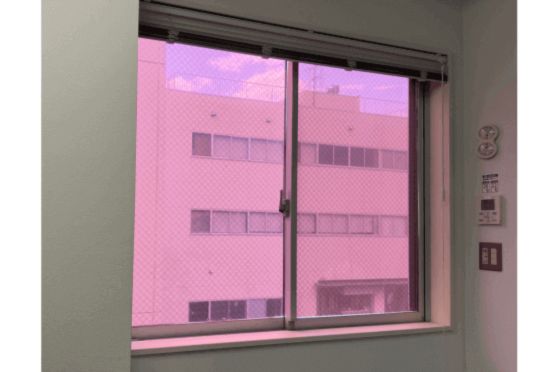 オプトロンフィルムを既存の窓ガラスに貼り付けるだけで、室内から漏れる光(紫外線)に誘引される虫が集まりにくい環境を作ることができます。