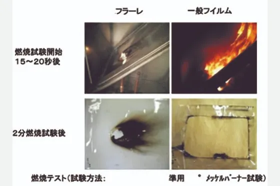 但し、自己消火性とは火元がなくなったときに自ら消火するという意味であり、火の中では燃えますのでご注意ください。